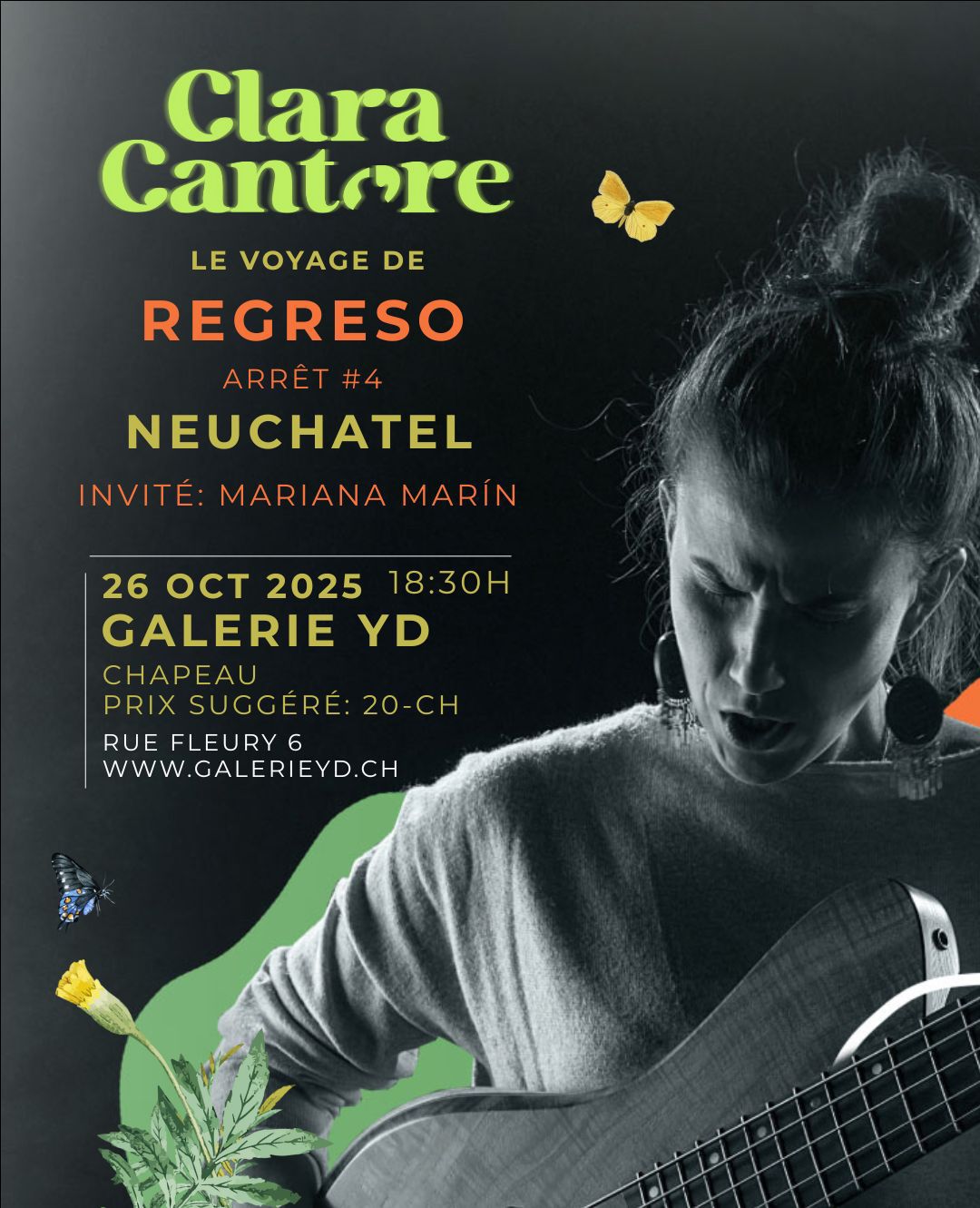 Clara Cantore Concert Le voyage de REGRESO Estacion « 3 » NEUCHATEL Invité : Mariana Marin Date 26 Oct 2025 Expiré! Heure 18 h 30 min - 20 h 00 min Catégorie Concert